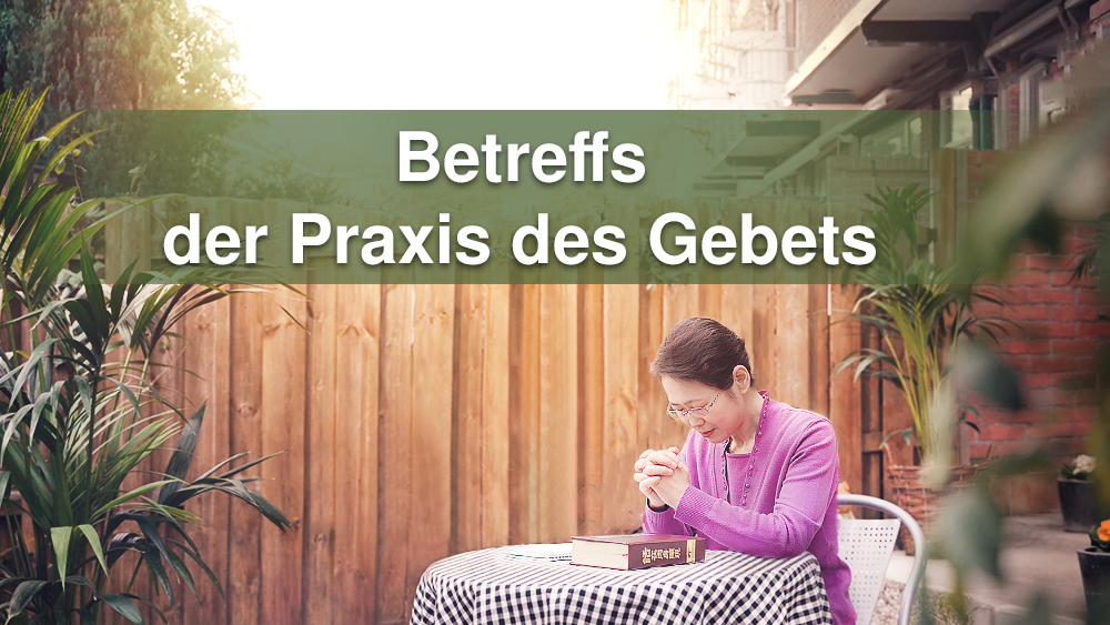 Ihr achtet in eurem täglichen Leben nicht auf das Beten. Die Menschen haben immer über das Beten hinweggesehen. Früher waren Gebete oberflächlich. Der Mensch tat vor Gott einfach als ob, und niemand hat vor Gott jemals sein Herz voll und ganz gegeben und wirklich zu Gott gebetet. Die Menschen beten nur zu Gott, wenn ihnen etwas zustößt. Hast du während dieser ganzen Zeit jemals wirklich zu Gott gebetet? Hast du jemals vor Gott Tränen des Schmerzes geweint? Hast du dich jemals vor Gott selbst kennengelernt? Hast du jemals ein vertrauliches Gebet mit Gott gehabt? Gebet kommt durch Praxis: Wenn du für gewöhnlich nicht zu Hause betest, dann wirst du keine Möglichkeit haben, in der Kirche zu beten, und wenn du üblicherweise nicht bei kleinen Versammlungen betest, dann wirst du nicht in der Lage sein, bei großen Versammlungen zu beten. Wenn du dich gewöhnlich Gott nicht näherst oder über die Worte Gottes nachsinnst, dann wirst du nichts zu sagen haben, wenn es Zeit zum Beten ist – und selbst wenn du betest, wirst du nur Lippenbekenntnisse abgeben; du wirst nicht wirklich beten. Was bedeutet es, wirklich zu beten? Es bedeutet, die Worte des Inneren deines Herzens zu Gott zu sprechen und mit Gott nach dem Begreifen Seines Willens und auf Seine Worte beruhend zu kommunizieren; es bedeutet, sich Gott besonders verbunden zu fühlen, zu spüren, dass Er vor dir ist und du Ihm etwas zu sagen hast; und es bedeutet, im Inneren deines Herzens besonders zu leuchten und zu spüren, dass Gott besonders lieblich ist. Du wirst dich besonders inspiriert fühlen, und nach dem Vernehmen deiner Worte, werden deine Brüder und Schwestern zufrieden sein, sie werden spüren, dass die Worte, die du sprichst, die Worte im Inneren ihrer Herzen sind, die Worte, die sie zu sagen wünschen, und dass das, was du sagst, das darstellt, was sie sagen wollen. Das bedeutet es, wirklich zu beten. Nachdem du wirklich gebetet hast, wirst du dich in deinem Herzen in Frieden fühlen, und zufrieden; die Kraft, Gott zu lieben, wird aufsteigen, und du wirst spüren, dass nichts in deinem ganzen Leben mehr wert oder bedeutsamer ist, als Gott zu lieben – und all dies wird beweisen, dass deine Gebete wirkungsvoll gewesen sind. Hast du jemals auf diese Weise gebetet? Und wie sieht es mit dem Inhalt der Gebete aus? Du solltest Schritt für Schritt beten, im Einklang mit deinem wahren Zustand und dem, was vom Heiligen Geist getan werden soll. Und du solltest mit Gott in Übereinstimmung mit Gottes Willen und Seinen Anforderungen an den Menschen kommunizieren. Wenn du anfängst, deine Gebete auszuüben, gib Gott zuerst dein Herz. Versuche nicht, Gottes Willen zu erfassen; versuche nur, die Worte im Inneren deines Herzens zu Gott zu sprechen. Wenn du vor Gott kommst, dann sprich folgendermaßen: „Oh Gott! Erst heute erkenne ich, dass ich Dir ungehorsam gewesen bin. Ich bin wahrlich verdorben und verachtenswert. Zuvor vergeudete ich meine Zeit; von heute an werde ich für Dich leben, ich werde ein sinnvolles Leben ausleben und Deinen Willen zufriedenstellen. Ich möchte, dass Dein Geist stets in mir wirkt und mich stets erhellt und erleuchtet, damit ich vor Dir ein starkes und überwältigendes Zeugnis ablegen und Satan Deine Herrlichkeit, Dein Zeugnis und den Beweis Deines Triumphs in uns erkennen lassen kann.“ Wenn du so betest, wird dein Herz vollkommen befreit sein. Wenn du so gebetet hast, wird dein Herz Gott näher sein, und indem du häufig so betest, wird der Heilige Geist unvermeidbar in dir wirken. Wenn du Gott stets auf diese Weise rufst und deinen Vorsatz vor Gott fasst, dann wird der Tag kommen, an dem dein Vorsatz vor Gott akzeptiert werden kann, an dem dein Herz und dein ganzes Wesen von Gott empfangen werden, und du wirst schließlich von Gott vervollkommnet werden. Das Gebet ist für euch von äußerster Wichtigkeit. Wenn du betest, empfängst du das Wirken des Heiligen Geistes, dein Herz wird somit von Gott berührt und die Kraft der Liebe Gottes in dir kommt zum Vorschein. Wenn du nicht mit deinem Herzen betest, wenn du dein Herz nicht öffnest, um mit Gott zu kommunizieren, dann wird Gott keine Möglichkeit haben, in dir zu wirken. Wenn du, nachdem du gebetet hast, all die Worte im Inneren deines Herzens gesprochen hast und der Geist Gottes nicht gewirkt hat, wenn du dich innerlich nicht inspiriert fühlst, dann zeigt das, dass dein Herz nicht aufrichtig ist, dass deine Worte nicht wahr sind und immer noch unrein. Wenn du, nachdem du gebetet hast, erfreut bist, dann sind deine Gebete von Gott akzeptiert worden und der Geist Gottes hat in dir gewirkt. Als jemand, der vor Gott dient, kannst du nicht ohne Gebete sein. Wenn du gemeinsamen Austausch mit Gott wirklich als etwas Bedeutsames und Wertvolles ansiehst, könntest du dann auf Gebete verzichten? Niemand kann ohne Kommunion mit Gott sein. Ohne Gebet lebst du im Fleisch, lebst du in Satans Knechtschaft; ohne wahres Gebet, lebst du unter dem Einfluss der Finsternis. Ich hoffe, dass die Brüder und Schwestern in der Lage sind, tagtäglich wirklich zu beten. Dies ist jedoch nicht Festhalten an Glaubenslehren, sondern eine Wirkung, die erzielt werden muss. Bist du bereit, auf ein bisschen Schlaf und Vergnügen zu verzichten, um bei Tagesanbruch Morgengebete zu sprechen und dich dann an den Worten Gottes zu erfreuen? Wenn du mit einem reinen Herzen betest und so die Worte Gottes isst und trinkst, dann wirst du mehr von Gott akzeptiert werden. Wenn du dies jeden Morgen tust, wenn du jeden Morgen praktizierst, dein Herz Gott zu geben und mit Gott zu kommunizieren, dann nimmt deine Gotteskenntnis mit Sicherheit zu und du wirst fähiger sein, Gottes Willen zu begreifen. Du solltest sagen: „Oh Gott! Ich möchte meine Pflicht erfüllen. Damit Du in uns verherrlicht sein kannst und Dich am Zeugnis in uns, dieser Gruppe von Menschen, erfreuen kannst, kann ich Dir nur mein ganzes Sein hingeben. Ich flehe Dich an, in uns zu wirken, damit ich Dich wirklich lieben