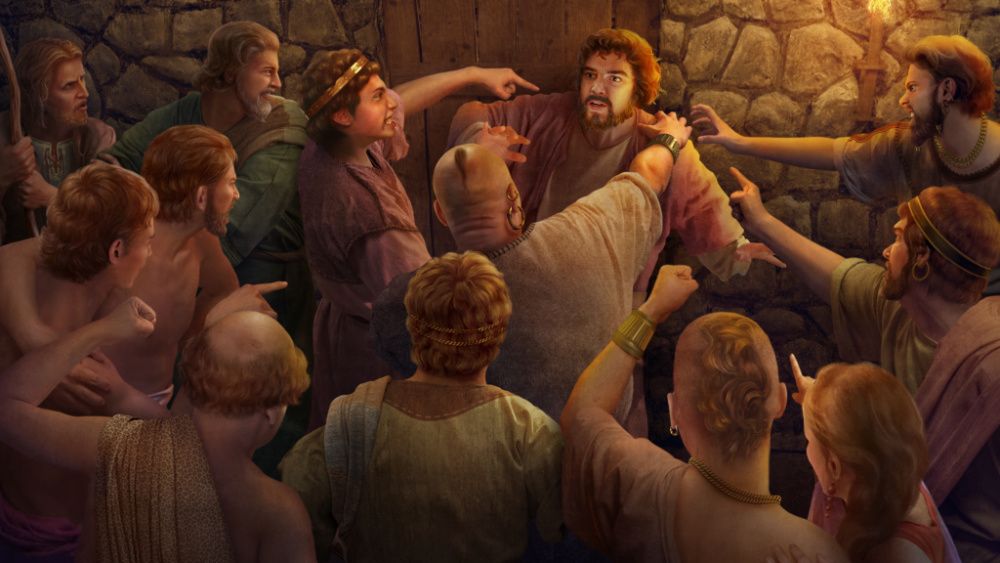 Als er sich Auge in Auge mit einer Bande von unmenschlichen Schlägern wiederfand, mit Menschen die mit seelen-verzehrendem Bestreben erfüllt waren, wie reagierte Lot da? Laut der Schrift, folgendermaßen: „Ach, liebe Brüder, tut nicht so übel! Siehe, ich habe zwei Töchter, die haben noch keinen Mann erkannt, die will ich herausgeben unter euch, und tut mit ihnen, was euch gefällt; allein diesen Männern tut nichts, denn darum sind sie unter den Schatten meines Daches eingegangen.“ Lot meinte das Folgende mit seinen Worten: Er war bereit, seine beiden Töchter aufzugeben, um die Boten zu schützen. Der Vernunft wegen hätten sie Lots Bedingungen zustimmen und die beiden Boten in Ruhe lassen sollen; schließlich waren die Boten wildfremde Leute für sie, die absolut nichts mit ihnen zu tun hatten; diese beiden Boten hatte nie ihren Interessen geschadet. Doch motiviert durch ihre schändliche Natur, beließen sie die Sache nicht dabei. Vielmehr verstärkten sie ihre Bemühungen noch. Hier kann der weitere Austausch zweifellos einen weiteren Einblick in diese wahre bösartige Natur dieser Menschen geben; zugleich lässt es einen den Grund wissen und verstehen, warum Gott diese Stadt zerstören wollte.